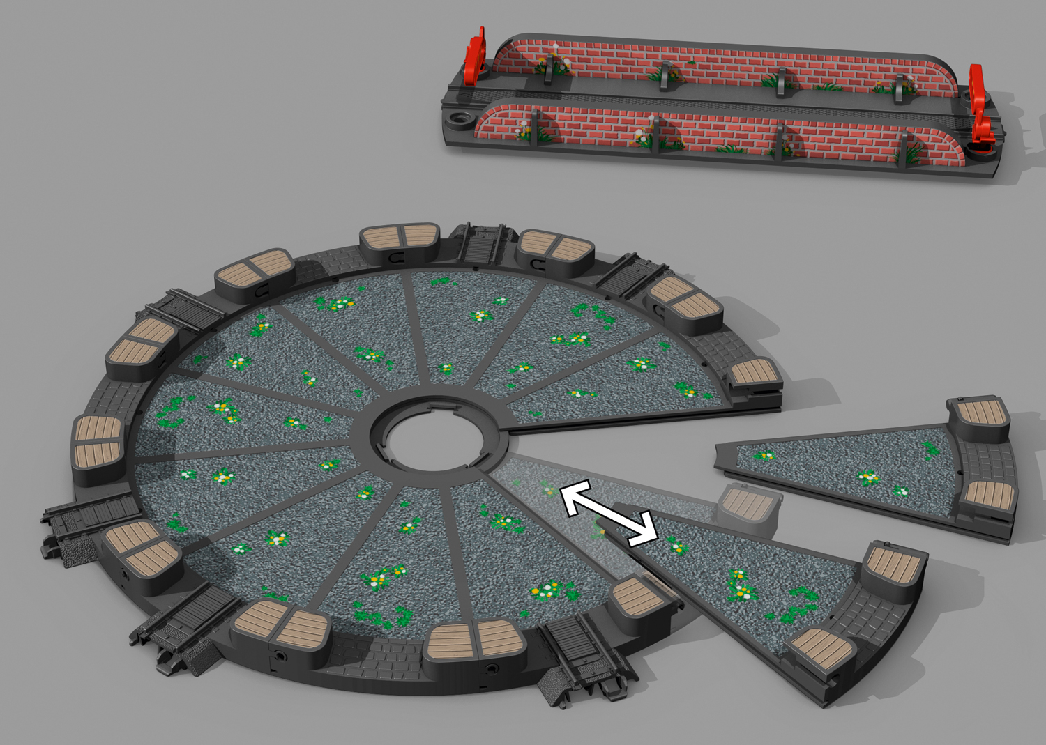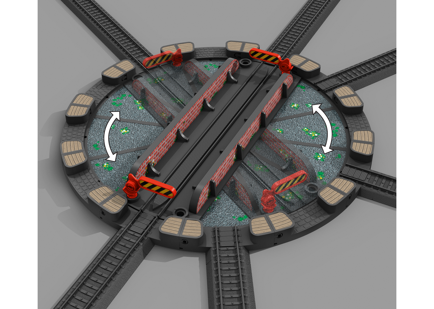 Märklin my world - Drehscheibe - Steckbarer Bausatz aus stabilem Kunststoff gefertigt. Die Drehscheibe lässt sich aus wenigen Teilen kinderleicht zusammenbauen und ist daher für Kinder ab 3 Jahren geeignet. Die Drehbühne kann manuell bewegt werden. 6 Gleisanschlüsse für das Märklin Kunststoffgleis zum Einsetzen an beliebiger Stelle. Auf der Drehscheibe ist genug Platz für alle Fahrzeuge aus dem Märklin my world Sortiment. Klebebogen zur Dekoration und Bauanleitung liegen bei. Durchmesser der aufgebauten Drehscheibe: 36 cm.Die Drehscheibe mit ihren beliebig platzierbaren Gleisanschlüssen, passt perfekt in das Zentrum einer jeden Märklin my world Bahn.