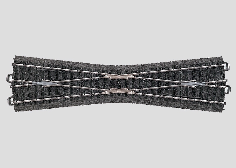 Länge 236,1 mm. Kreuzungswinkel 12,1°. Kreuzende Strecken elektrisch getrennt. An den Enden der Kreuzung werden 4 Gleise 24071 benötigt (nicht in 24740 enthalten). 2 passende Böschungskeile liegen bei.