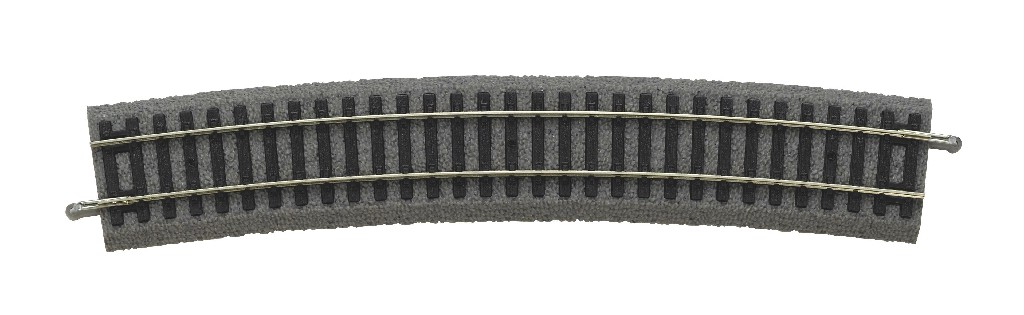 PIKO A-Gleis mit Bettung, feindetaillierten Schwellen und realistischer, scharfkantiger Schotternachbildung und Farbgestaltung. Bogen R9 Radius 908mm. Weichen-Gegenbogen.