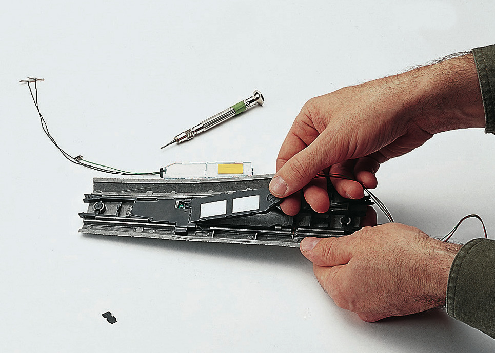 Der elektrische Anschluss erfolgt über zwei Kabel direkt an die Schienenprofile. Der Digital-Weichenantrieb enthält bereits einen Dekoder und ist im eingebauten Zustand programmierbar.