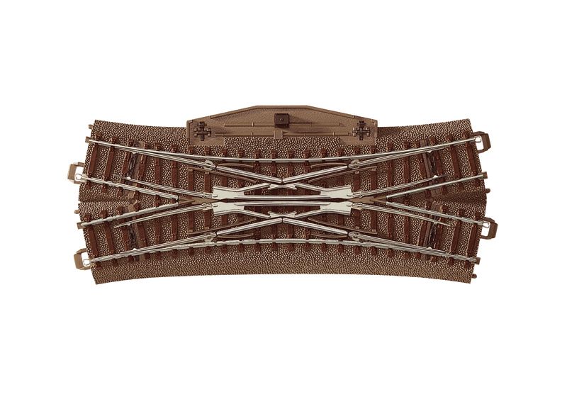 Doppelte Kreuzungsweiche. Länge 188,3 mm, Kreuzungswinkel = Bogen 24,3°, Radius 437,5 mm (R2). Mit Handschalthebel, Elektroantrieb und beleuchteter Weichenlaterne. Weichendecoder nachrüstbar. Kreuzungsweiche rechts und links verwendbar. Eindeutige Stellung Bogenfahrt oder Durchfahrt Elektroantrieb und Laterne bereits eingebaut.