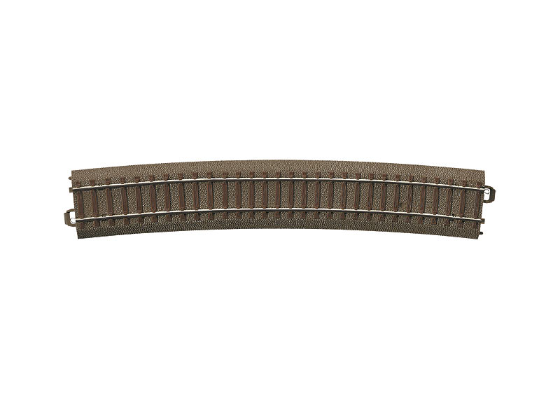 Radius 1114,6 mm, Bogen 12,1°. Gegenbogen zu schlanken Weichen. Auch zum Bau sanft geschwungener Strecken geeignet.