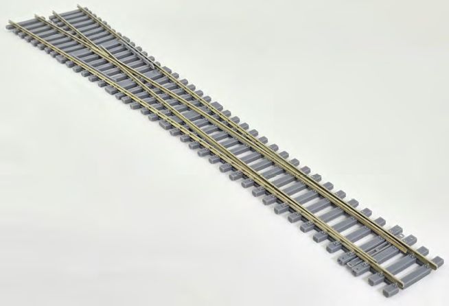 Weiche links, Weichenwinkel 9°, Länge 585,88 mm, Radius 2500mm. Lieferung mit Weichenstellhebel, kann mit dem Antrieb 45040 zur digital bedienbaren Weiche ergänzt werden.
