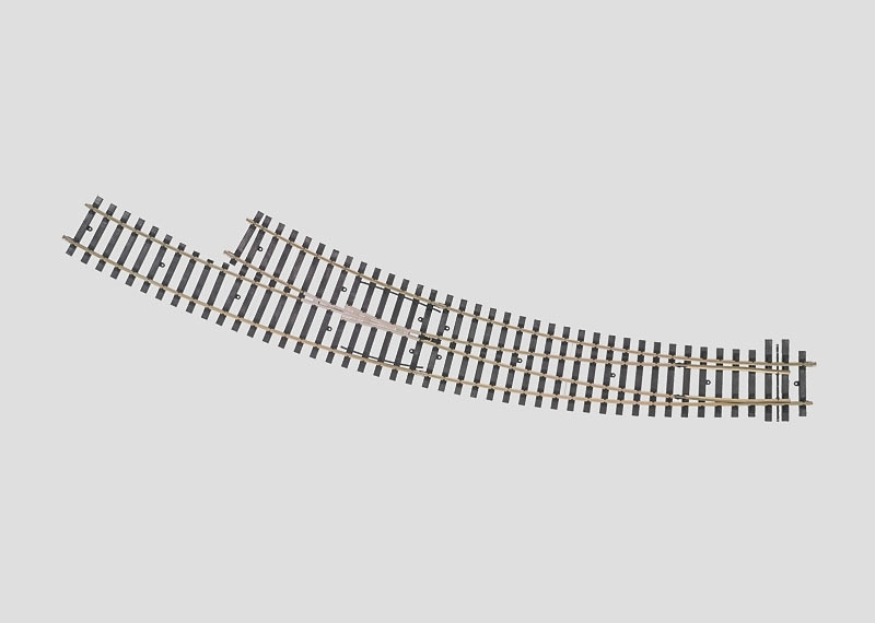 Radius 1.394/1.550 mm. Herzstück und Weichenzungen aus Metall. Lieferung der Innenbogenweiche erfolgt zweigeteilt. Weichenbock mit Beleuchtung und Grenzzeichen sind im Lieferumfang enthalten. (H1098)