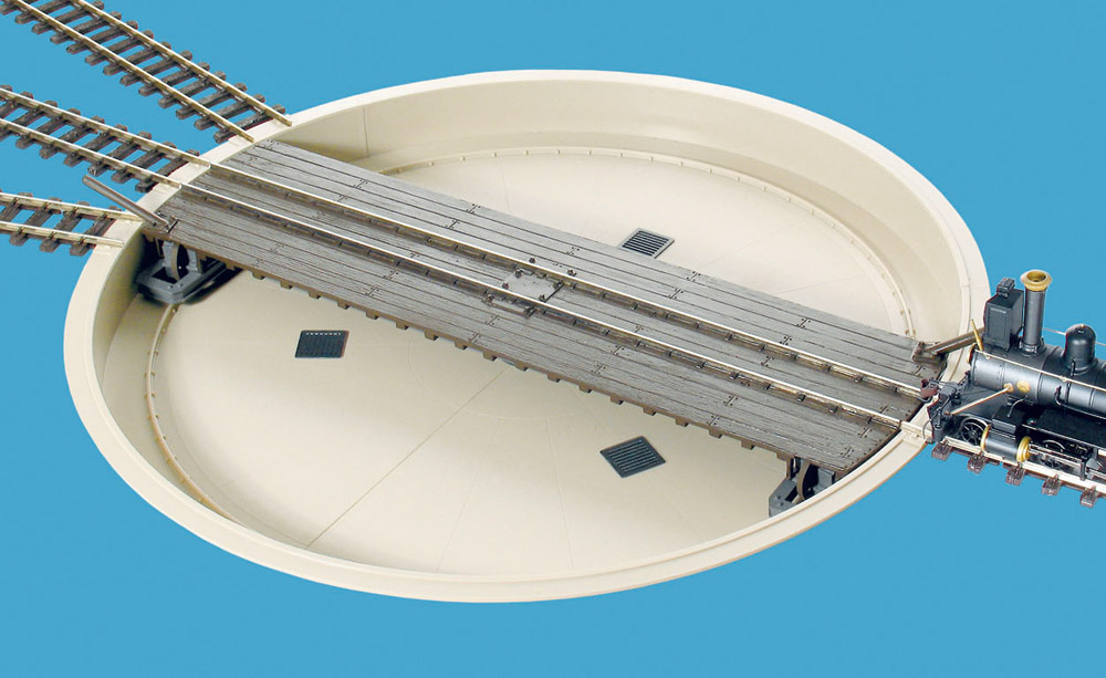 Dieser leicht zu bauende Bausatz ist ein Modell einer handbetriebenen amerikanischen Drehscheibe. Sie kann entweder mit Code 100 oder Code 75 Gleisen verwendet werden. Im Lieferzustand ist sie handbetrieben, aber ein motorisierter Bausatz wird bald erhältlich sein. Vollständige Anleitung liegt bei.