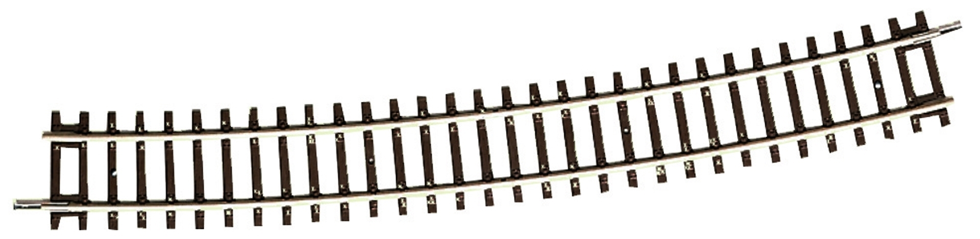 Gebogenes Gleis R11, r = 888 mm/15°. Der Radius R10 dient in erster Linie als Gegenbogen zu 15°-Weichen.