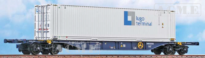 Intermodalwagen Typ Sgnss 60 CEMAT, Epoche V/VI, beladen mit Lugo Terminal Wechselaufbauten