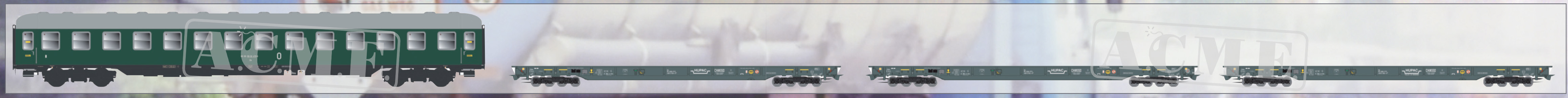 Rollende Landstraße HUPAC, Epoche VI bestehend aus einem Liegewagen und drei Niederflurwagen Typ Saadkms