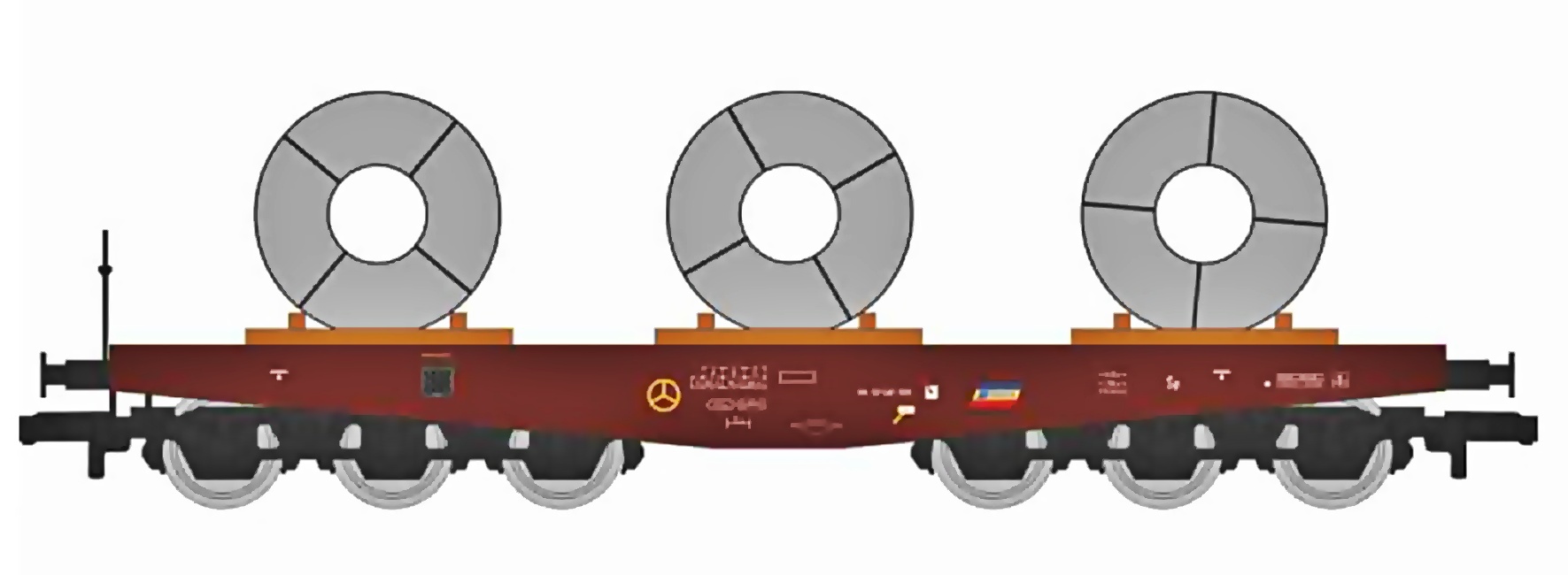 Flachwagen Typ Salmmp mit Coils, CFR Marfa