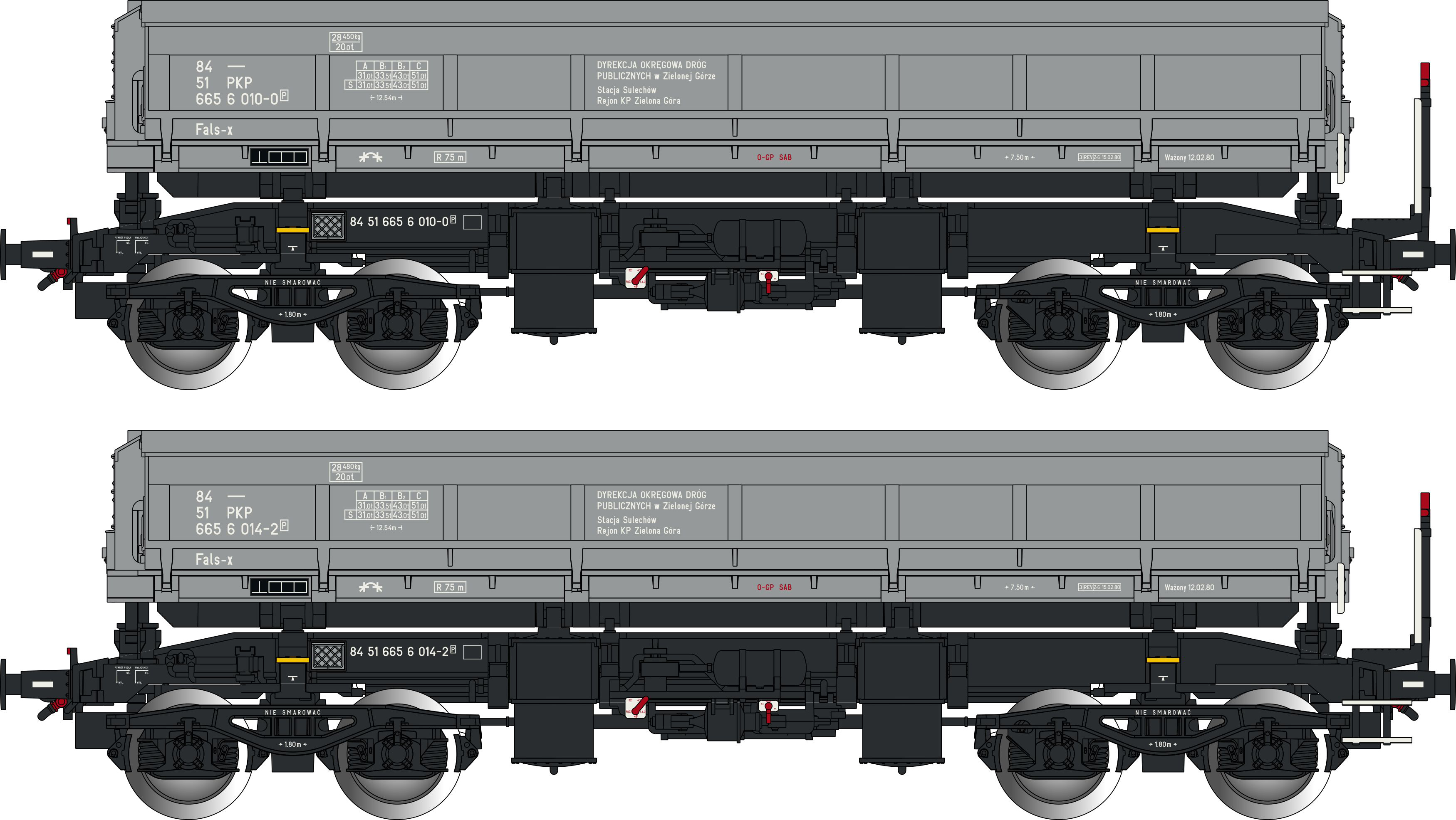 2 teiliges Selbstentladewagen Set Fals-x der PKP für die Epoche IV