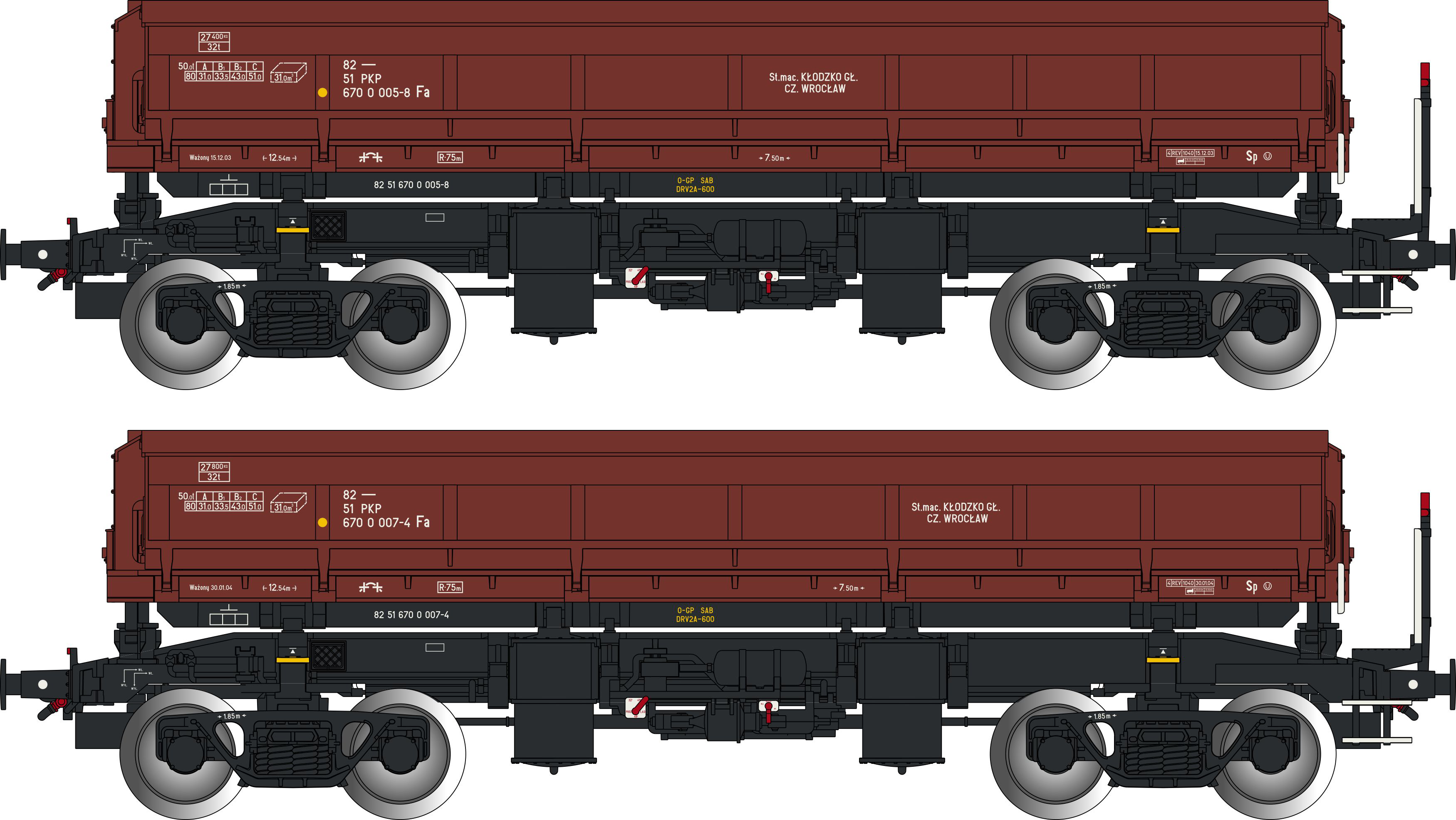 2 teiliges Selbstentladewagen Set Fa der PKP für die Epoche V
