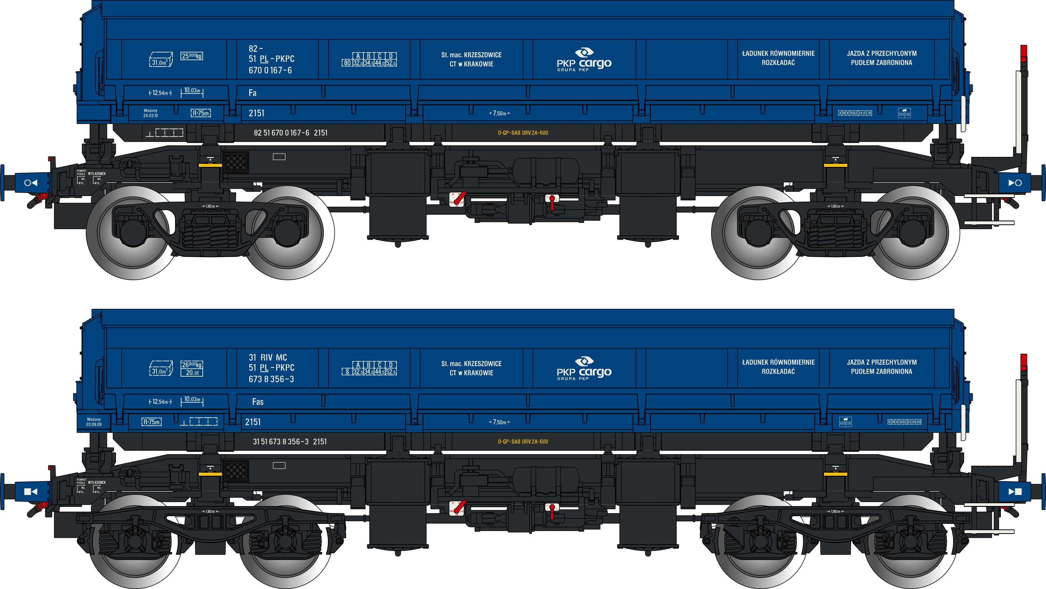 2 teiliges Selbstentladewagen Set Fa + Fas der PKP CARGO für die Epoche VI