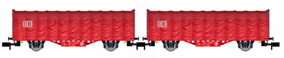 DB AG, set de dos vagones lona tipo Kijls, decoración rojo tráfico, ép. V-VI