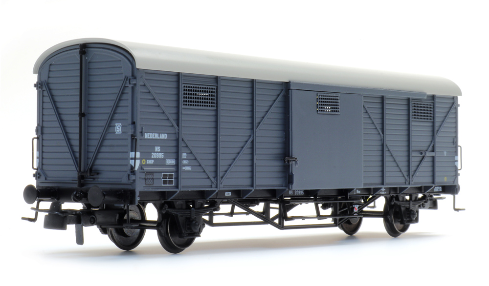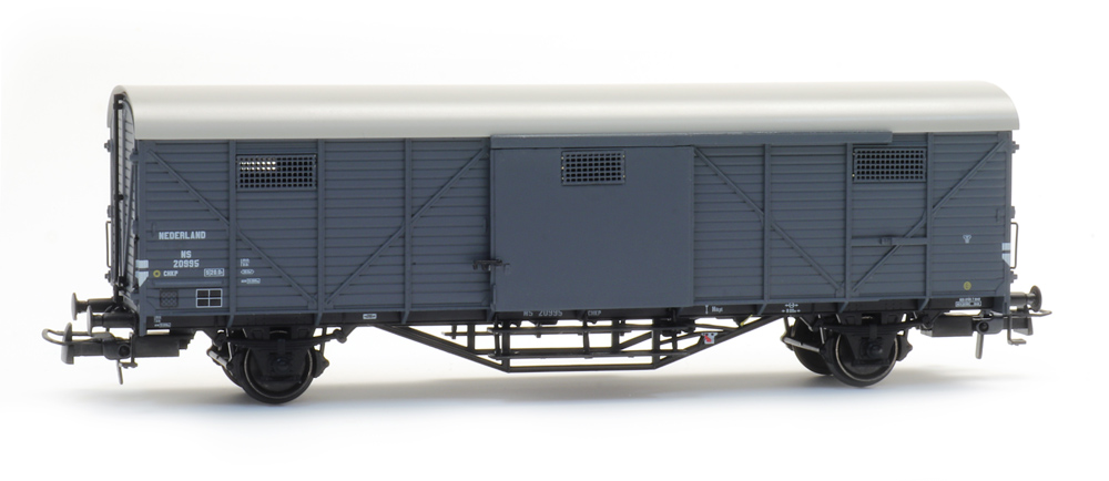 Gedeckter Güterwagen Hongaar Bauart CHKP der NS mit Fronttüren. Betriebsnummer: 20 995.