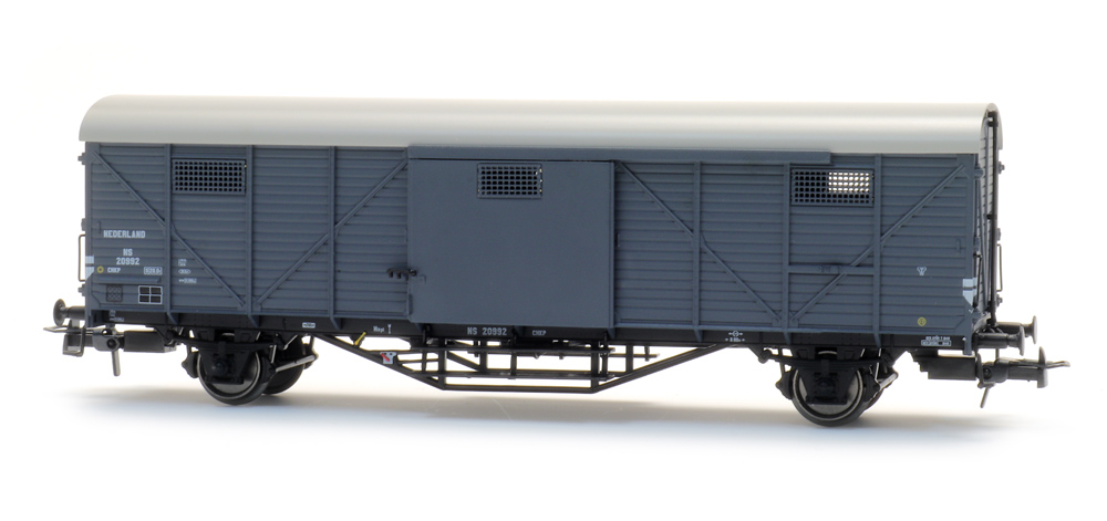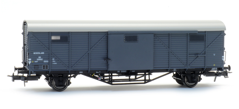 Gedeckter Güterwagen Hongaar Bauart CHKP der NS mit Fronttüren. Betriebsnummer: 20 992.