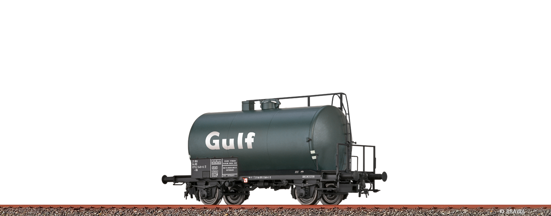 Kesselwagen Uh Gulf der NS Betriebsnummer: 21 84 070 2 349-6 [P], für die Epoche 4.