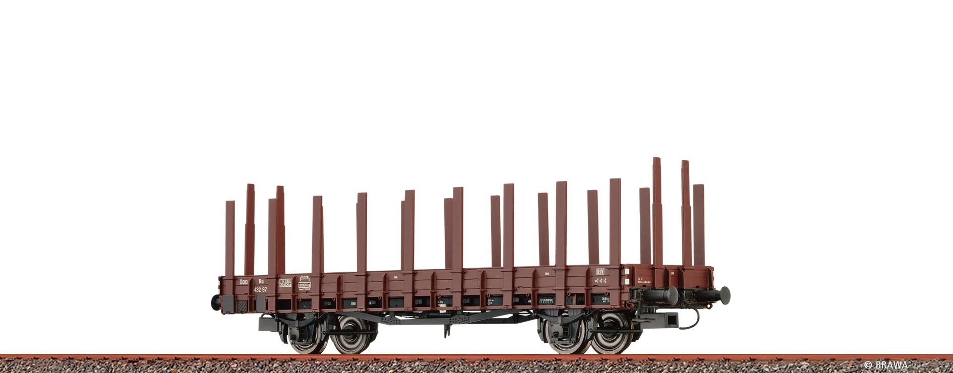 Auch bei den Rungenwagen stand Mitte der 20er-Jahre die Neukonstruktion nach den Austauschbaugrundsätzen an. Man entschied, auf das Fahrwerk des Gl-Wagens zurückzugreifen, sodass der Wagen länger als sein Vorgänger der Verbandsbauart wurde und zwei Rungen mehr besaß. Die größere Ladefläche wirkte sich allerdings nicht auf das Ladegewicht aus; dies blieb unverändert bei 15 Tonnen. Da die Mehrheit der transportierten Güter in der Regel ein hohes Volumen bei niedrigem Gewicht hatte, wirkte sich das nicht weiter negativ aus.Wie beim G-Wagen war auch bei den Rungenwagen ein großer Teil der Fahrzeuge dem Zeitgeist entsprechend übergangsfähig auf russische Breitspur und durch die weißen Pufferhülsen und das Nebengattungszeichen "r" entsprechend gekennzeichnet.Mehrfachen Änderungen unterworfen war der Fußboden. Hatten die ersten 180 Wagen, die ab 1926 gebaut wurden, noch einen Boden aus 56mm starken Bohlen, kamen ab 1934 zwei kreuzweise verlegte Lagen von je 32mm zum Einsatz. Zu Beginn der 40er-Jahre wurden dann alle Wagen mit 72mm starken Brettern ausgerüstet - LKWs und Kettenfahrzeuge waren jetzt das Haupttransportgut.Insgesamt wurden an die DRG 1643 Wagen geliefert, so dass der R(rh) "Stuttgart" im gesamten Rungenwagenbestand eine eher bescheidene Rolle einnahm. Dieses Los teilte er mit fast allen Austauschbauwagen, die die Stückzahlen ihrer Vorgänger meist nicht ansatzweise erreichten. Neben Straßenfahrzeugen dienten sie vor allem zum Transport von Baumstämmen, Schnittholz, Blechen, Profilen und anderen großvolumigen, nässeunempfindlichen Gütern.