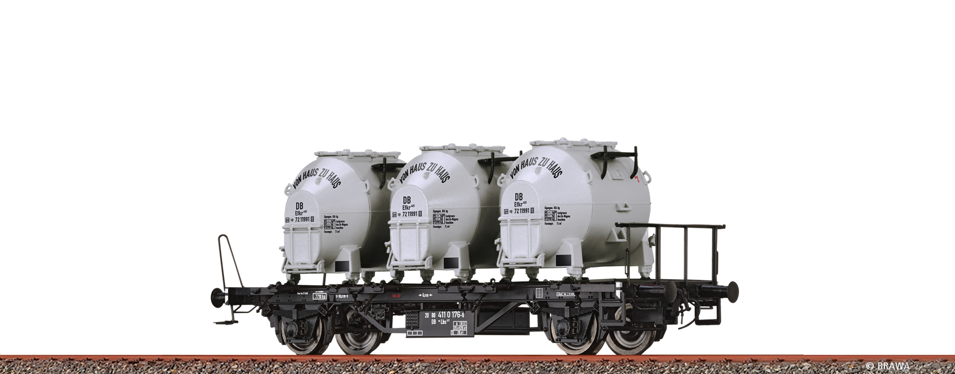 Behältertragwagen Lbs 577 der DB, mit Efkr 401 "Von Haus zu Haus"