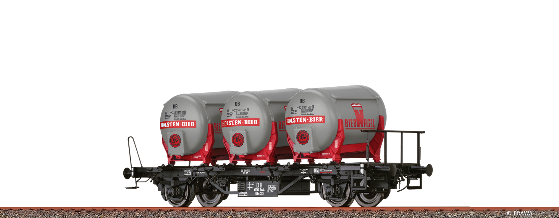 Behältertragwagen BTs 30 der DB, mit Ddikr 621 "Holsten-Bier"