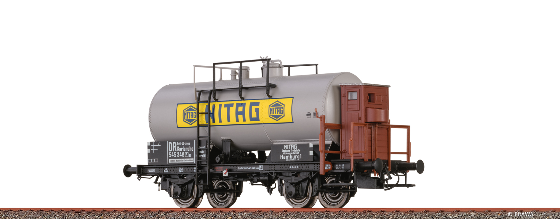 Kesselwagen 2-achsig Z[P] "NITAG" der DR Brit-US-Zone, mit Bremserhaus, Epoche 3a