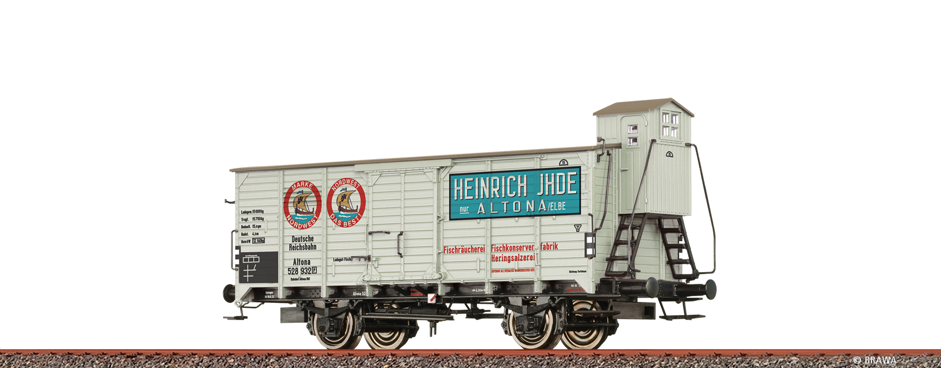 Modelldetails: Vorbildgerechter Rahmenaufbau Präzise Nachbildung der Bretterfugen Achsstege und Räder aus Metall Mehrteilige Bremsanlage Extra angesetzte Signalhalter Bremsbacken in Radebene Durchbrochene Wagenkastenstützen Präzise Bedruckung und Lackierung Extra angesetzte Achslagerdeckel LüP: 110,3 mm Betriebsnummer: Altona 528 932 [P] Tarifliche Bedingungen einerseits und technische Gegebenheiten andererseits führten dazu, dass alle Länderbahnverwaltungen gedeckte Güterwagen mit fast gleichen Abmessungen und Ladegewichten entwickelten. Es handelte sich um Wagen mit 4,5 m Radstand, einer Länge über Puffer von 9,3 m bei ungebremsten Wagen, einem Ladegewicht von 15 t, später 17,5 t und einer Bodenfläche von etwa 21 Quadratmeter. Diese Güter wagenbauart wurde zum wichtigsten und meistgebauten gedeckten Güterwagen überhaupt, sie trugen ursprünglich das Gattungszeichen Gm. Der meistverbreitete dieser Länderbahnwagen war der nach preußischem Musterblatt IId8, von dem allein 47.533 gebaut wurden. Nach der Gründung des Deutschen Staatsbahn Wagen Verbandes DWV 1909 wurde daraus der Verbandswagen Bauart A2 entwickelt. Dieser wurde ab 1911 in einer Gesamtstückzahl von sagenhaften 121.770 Exemplaren gebaut. Damit war es weltweit der meistgebaute gedeckte Güterwagen. Er dominierte bis in die frühe Epoche 3 das Bild der deutschen Güterzüge. Durch zwei Weltkriege wurden diese Wagen über ganz Europa verstreut, es gab keine europäische Bahnverwaltung bei der nicht wenigstens zeitweise solche Wagen eingesetzt wurden.