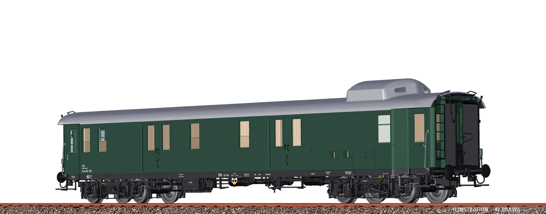 AC LED+ - H0 Gepäckwagen Pw4üe ÖBB - Epoche III - Betriebsnummer 60 346- Metallachshalter - Vorbildgerechte Achslagerdeckel - Bremsbacken in Radebene - Extra angesetztes Achsbremsgestänge - Mehrteilige Bremsanlage - Variantengerechte Seitenwände - Variantengerechte Dachausführung - Vollständige Nachbildung des Fahrzeugbodens - Innenbeleuchtung vorbereitet bzw. eingebaut - Kurzkupplungskinematik - Feine Bedruckung und Lackierung - Länge über Puffer: 249,7 mm - Schnittstelle: Lötpunkte - Inneneinrichtung: eingebaut - Innenbeleuchtung: eingebaut - Kurzkupplungskinematik: eingebaut - AC Radsatztausch: nein, nicht empfohlen - Vorbild: Der allgemeine Stand der Schweißtechnik ermöglichte es der Deutschen Reichsbahn (DRB), ab dem Jahr 1935 den Waggonbau vollständig auf diese Technik umzustellen. Zeitgleich gab es durch die bisherigen Gepäckwagen der genieteten Bauarten nicht genügend Ersatz für in die Jahre gekommene Länderbahnbauarten.$Vor diesem Hintergrund beauftragte die DRB das Reichsbahnzentralamt für Maschinenbau zusammen mit der Waggonfabrik Linke-Hoffmann-Werke AG mit der Konstruktion eines vollständig geschweißten D?Zug-Gepäckwagens der Bauart 1935, 1936 und 1936a.$Im Fahrzeugprogramm 1935 II wurden von dem 21,72 m langen Wagen zwanzig Stück bestellt. 59 leicht überarbeitete Wagen folgten im Programm 1936 I. Darunter waren mit den Wagen der Bauart 1936a die ersten Fahrzeuge mit einer stromlinienförmigen Dachkanzel. Die Bestellungen I und II des Jahres 1937 umfassten 252 Wagen, die fast identisch mit denen der Bauart 1936a waren. Damit standen der DRB ab 1940 331 Stück moderne D?Zug-Gepäckwagen mit einer Höchstgeschwindigkeit von 140 km/h, für die betrieblichen Belange zur Verfügung.Während die 18 zur Deutschen Reichsbahn gelangten Wagen in ihrer späteren Einsatzzeit so gut wie keine Umbauten erfuhren, gab es bei der Deutschen Bundesbahn bei über 123 Wagen mehrere Anpassungen. Die auffälligste war sicherlich der Wegfall der Dachkanzel bei einer Vielzahl der Wagen ab Mitte der 1960er Jahre. Damit der Zugführer trotzdem die Übersicht über seinen Zug behielt, wurde auf der rechten Fahrzeugseite ein zusätzliches Fenster eingebaut.$Zudem entfielen nach und nach die Hundeabteile mit ihren nach außen zu öffnenden Türen, da Hunde ab den 1950er Jahren auch in den Abteilen reisen durften.$Durch die modernen Gepäckwagen der m?Wagen?Serien wurden die Altbauwagen der Bauarten 36 und 37 mehr und mehr durch moderne Bauarten ersetzt, sodass 1984 die letzten Wagen ausgemustert wurden.