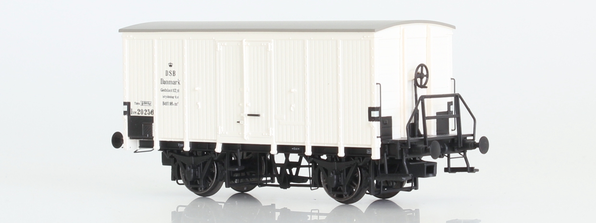 Modell eines isolierten Kühlwagens der DSB IVM in der Plattformversion mit unausgeglichenem Bremssystem, gebaut 1901 von Scandia