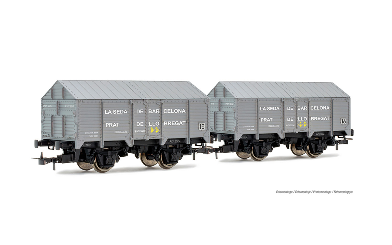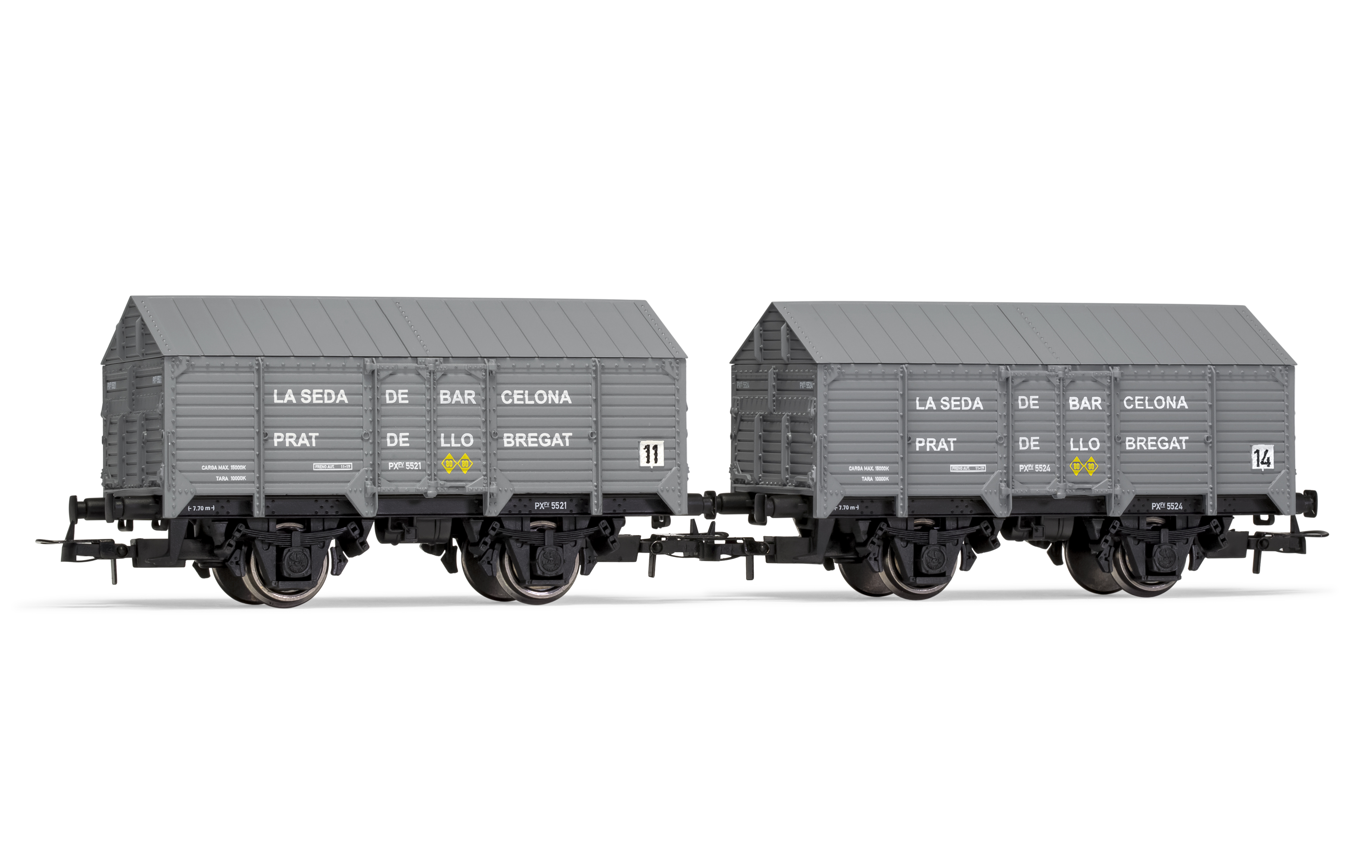 R.N., 2-tlg. Set gedeckte Güterwagen, graue Lackierung, La seda de Barcelona, Ep. III