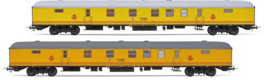 RENFE, coffret de 2 fourgons postaux P3-3100 avec bogies pour 160 km/h, livrée jaune, ép. IV-V
