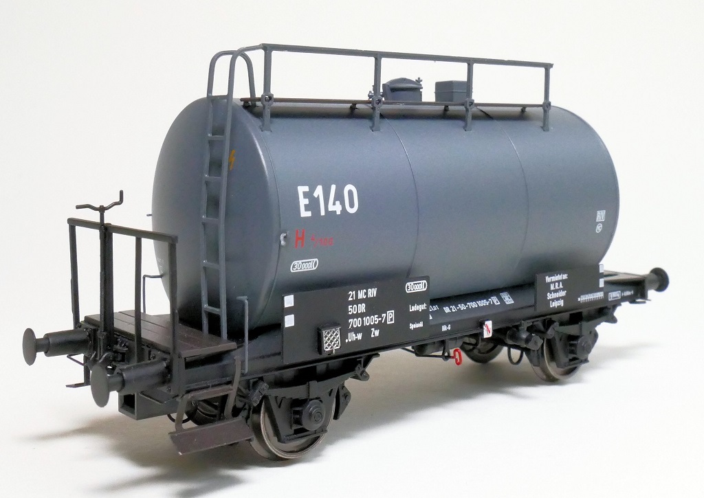 30m³ Leichtbau Kesselwagen Uerdinger Bauart Uh-w Zw der DR E140 Speiseöl, Betriebsnummer 21 MC RIV 50 DR 700 1005-7 P, für die Epoche 4.