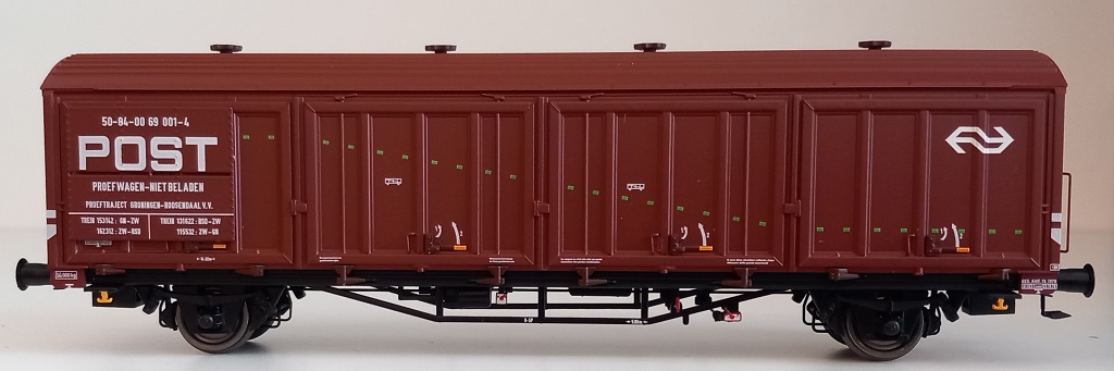 NS Postwagen Nr. 50 84 006 9 001-4, 3 Sicken, braun, grüner Streifen