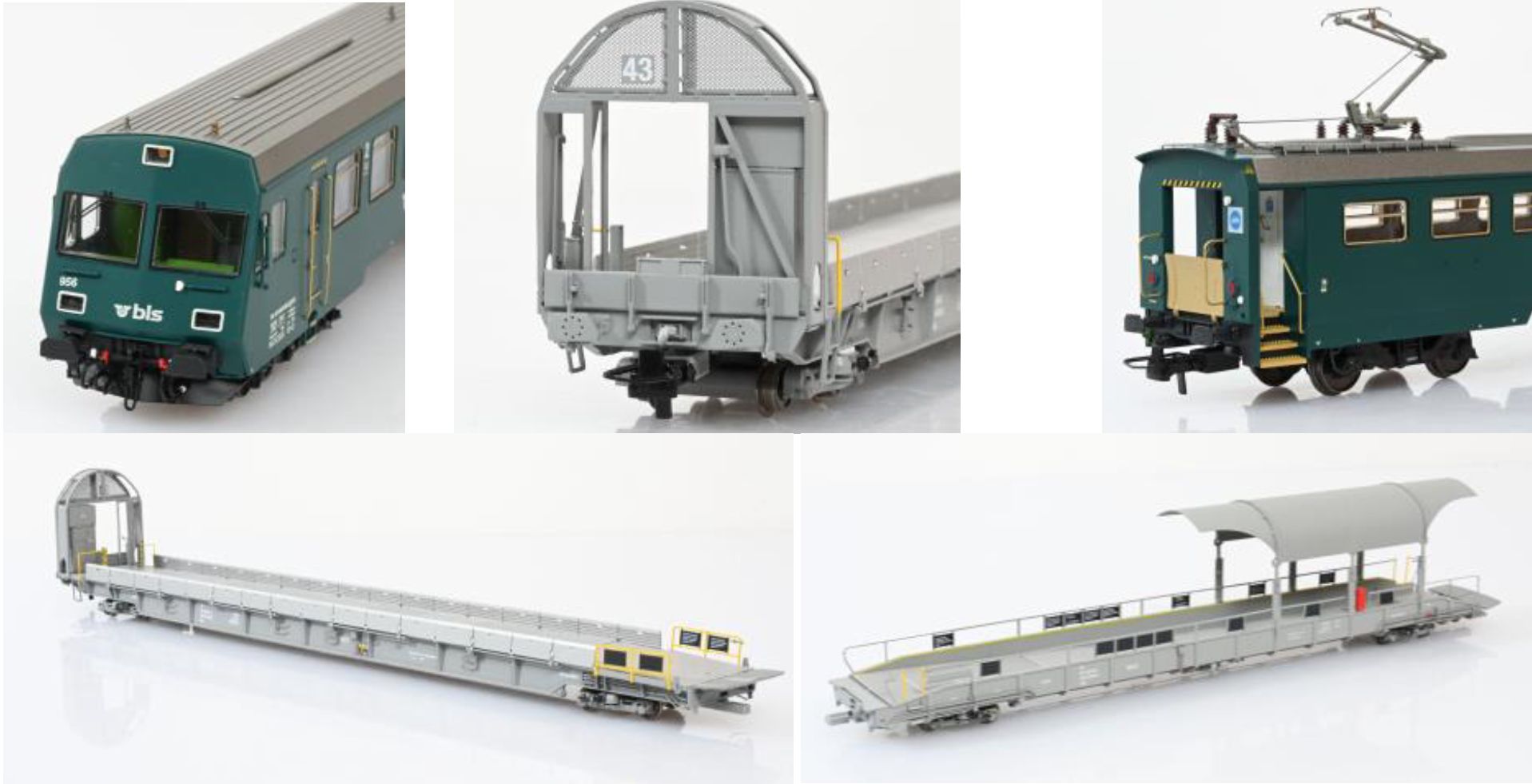Steuerwagen BDt: Das Modell sowohl das Original sind mit 24 Sitzplätzen und einem gossen Abteil für Motorräder ausgestattet. Zusätzlich ist pro Steuerwagen ein WC vorhanden. Die Steuerwagen wurden zwischen 1990-1991 ausgeliefert und in Dienst gestellt. Da auf die UIC Zugsammelschiene verzichtet wurde, sind die Steuerwagen mit je einem Panto zur Stromversorgung ausgestattet. Ebenfalls wurde ein Hilfskompressor zum Heben und Senken des selbigen installiert. Die Modelle sind im Massstab 1:87 in Ep VI gefertigt worden und stellen den Ist-Zustand dar. Führerstand sowie Gepäckraum sind beleuchtet. Ebenfalls wurde auf den korrekten Lichtwechsel geachtet, 2rote hinten und 3 weisse Spitzenlichter.
