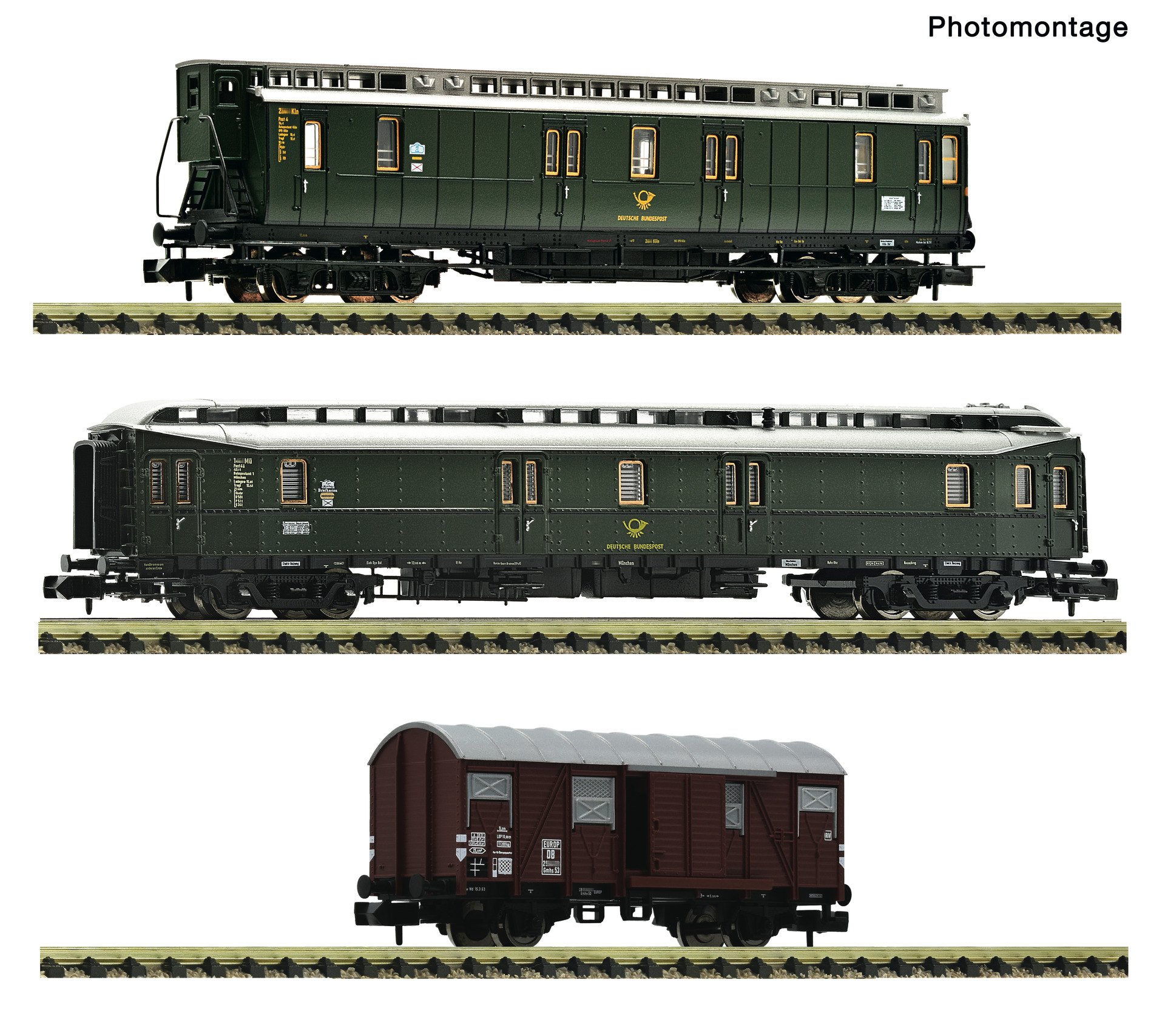 DB 3-tlg. Set: Postzug - - Gedeckter Güterwagen mit beweglichen Schiebetüren