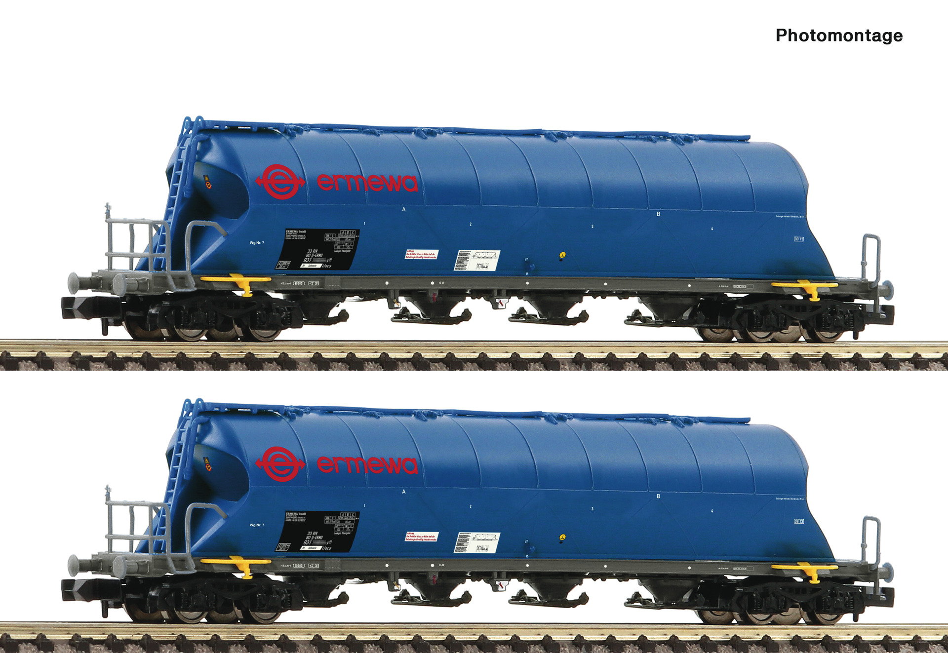 Wagenset mit zwei 4-achsigen Staubsilowagen, Gattung Uacs, der Ermewa.