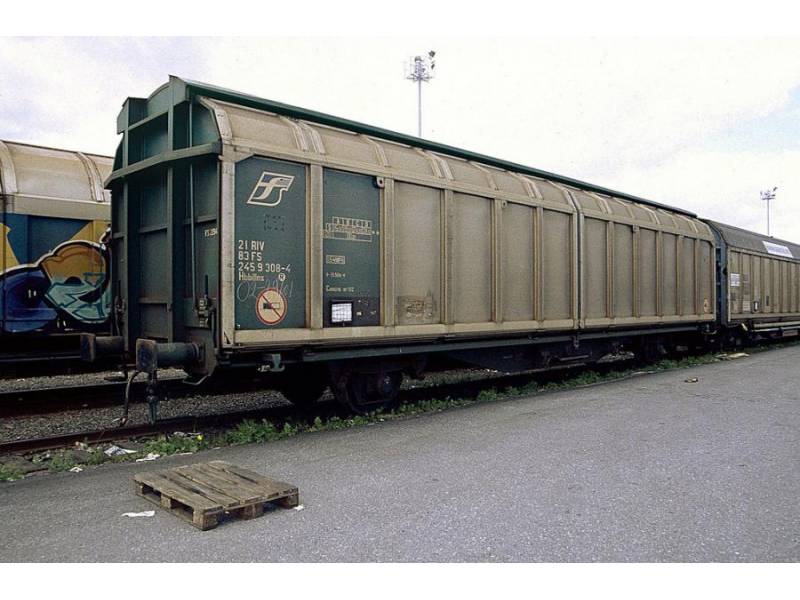 Zweiachsiger Güterwagen mit zweiteiligen Aluminium-Schiebewänden und sechs verriegelbaren Trennwänden. Wenn's empfindlich wird: Dieser großräumige Wagen ist mit Schiebewänden ausgerüstet, die von einer Person bewegt werden können. Im geöffneten Zustand ist der Zugang zur gesamten Ladefläche von beiden Seiten möglich. Be- und Entladen mit Gabelstaplern ist damit sowohl von einer Rampe als auch von ebener Erde möglich. Dieser Wagen ist für eine schonende Beförderung hochempfindlicher Güter verschiedener Art mit der Transportschutzeinrichtung "verriegelbare Trennwände" ausgestattet. Bei Transportschutzeinrichtungen kann der Wagenraum in einzelne Kammern unterteilt werden. Die Wagen sind in unterschiedlichen Ausführungen bei DB Cargo, der SBB Cargo, PKP Cargo, SNCF und FS im Einsatz. Einige der SBB Wagen sind durch ganzseitige Comic-Graffitis besonders auffällig. Unser Modell berücksichtigt die Bauartunterschiede zwischen der DB und der SBB Ausführung.
