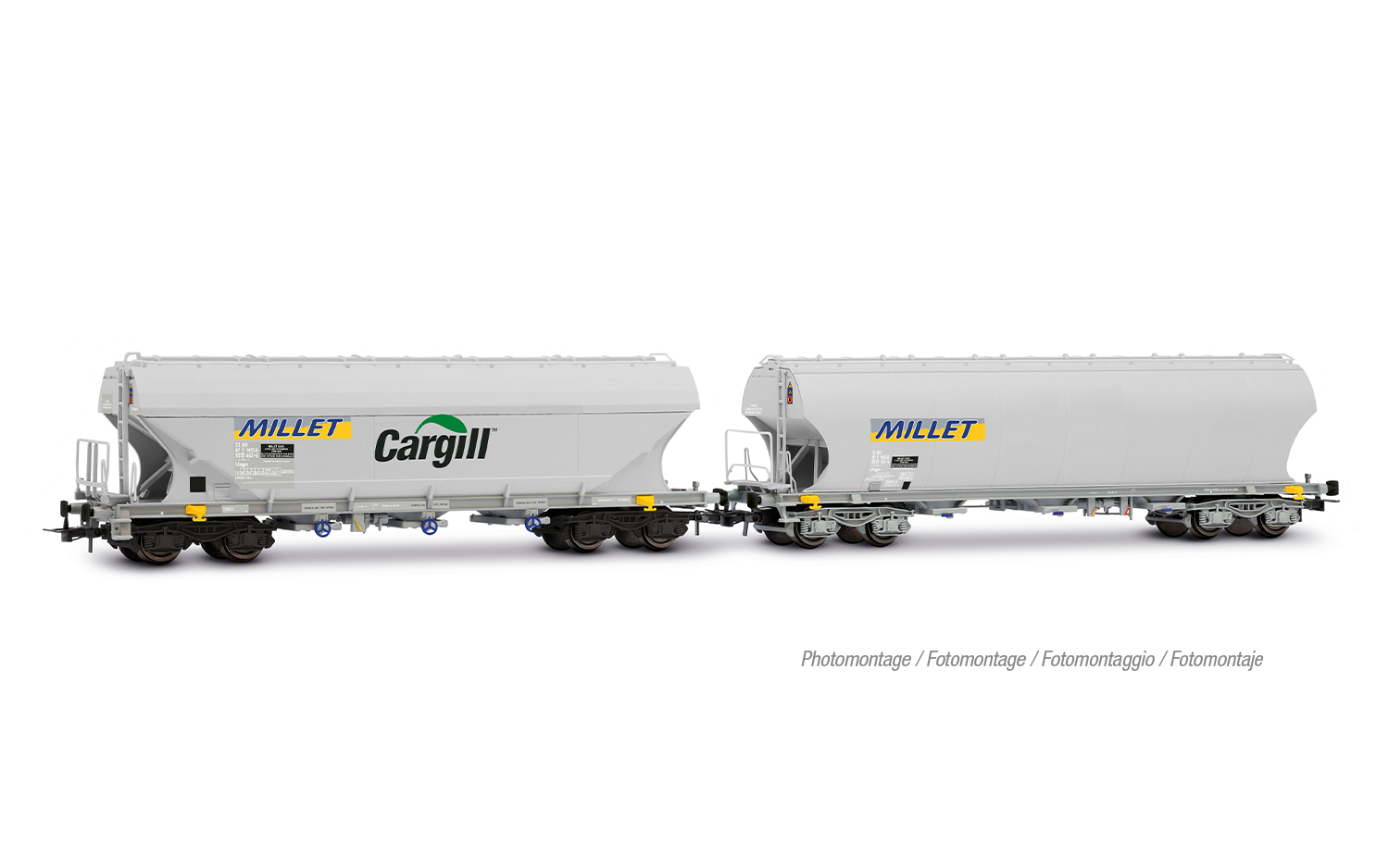 SNCF, 2-tlg. Set 4-achs. Getreidesilowagen äMILLETö, gerade und runde Seitenwände, graue Farbgebung - HC6100 (10.27 x 25,20 mm)
