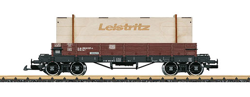 LGB Museumswagen 2016 Leistritz. Vierachsiger offener Güterwagen der Bauart Res der DB, Epoche IV. Beladen mit einem verpackten Turbinenläufer, beschriftet Fa. Leistritz Nürnberg. Ladegut Echtholz, abnehmbar. Metallradsätze. Länge über Puffer 42 cm.
