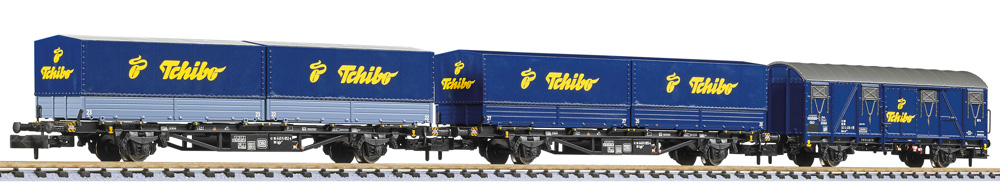 Wagen-Set "Tchibo-Zug": Seit jeher werden außer Kaffee auch andere Tchibo-Erzeugnisse nicht nur mit dem LKW, sondern auch mit der Bahn