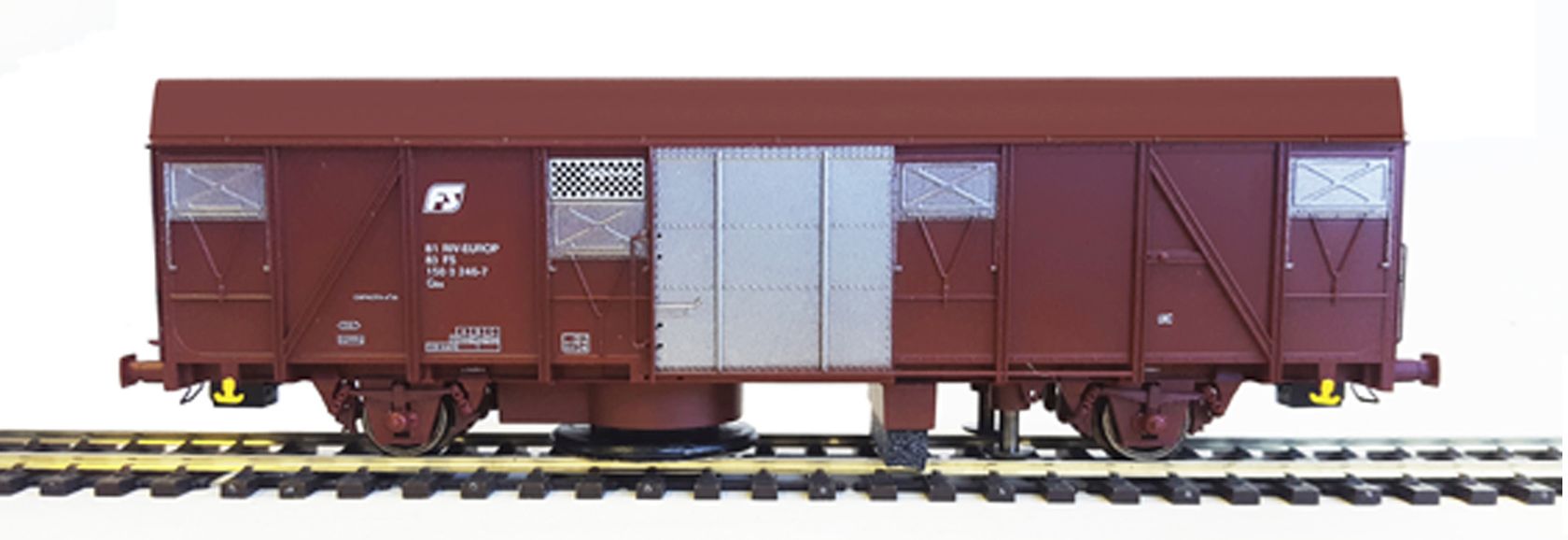 Reinigungswagen auf Basis eines gedeckten Güterwagens der Bauart Gbs der FS für die Epoche 4.