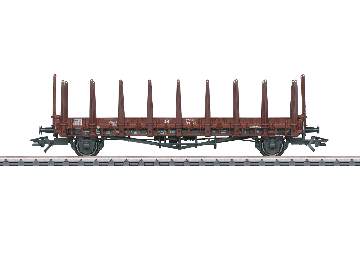 Güterwagen Rms 31 - Vorbild: Offener Güterwagen Bauart Rms 31 der Deutschen Bundesbahn (DB). Ausführung mit niedrigen Bordwänden, Gleitachslagern und Pressblechrungen. Betriebszustand um 1961.Modell: Mit Sprengwerk und Staukästen am Untergestell, Gleitachslagern und Kopfstücken mit Durchbrüchen. Einsteckbare Rungen liegen bei. Länge über Puffer ca. 13,9 cm. Gleichstromradsatz E700580.