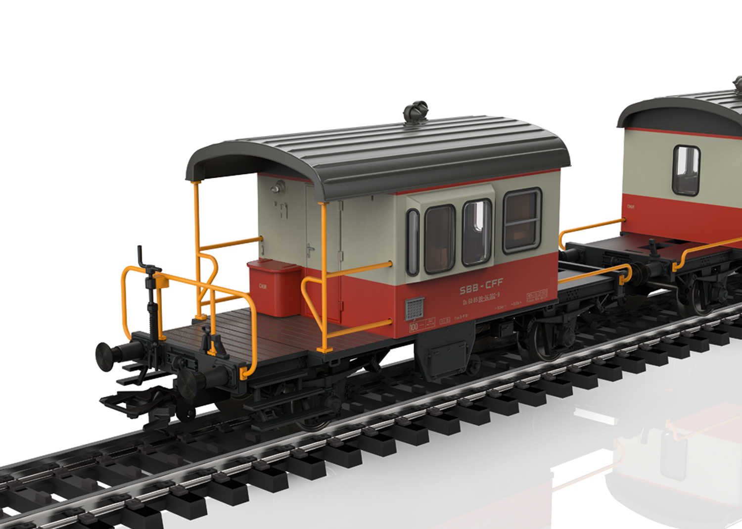 Kuppelwagen-Set Sputnik Swiss Express - Vorbild: Zwei ehemalige Dienstbegleitwagen Bauart Db der Schweizerischen Bundesbahnen (SBB/CFF/FFS). Kieselgrau/Blutorange Grundfarbgebung im Einsatz als Kuppelwagen des Swiss Express. Betriebszustand ab 1975.Modell: Komplette Neukonstruktion des Dienstbegleitwagen Bauart Db Sputnik. Typspezifisch gestalteter Unterboden mit vielen angesetzten Details. Pufferhöhe nach NEM. Separat angesetzte Griffstangen, Handbremskurbel, Gaskasten und Dachlüfter. Mit Inneneinrichtung. Länge über Puffer ca. 21,3 cm. Gleichstromradsatz E700580.Die passenden Personenwagen des Swiss Express finden Sie ebenfalls als Neukonstruktion im Märklin H0-Sortiment unter der Artikelnummer 42190 und 42191. Eine passende Elektrolokomotive finden Sie im Märklin H0-Sortiment unter der Artikelnummer 38420.Dieses Modell finden Sie in Gleichstromausführung im Trix H0-Sortiment unter der Artikelnummer 24650.