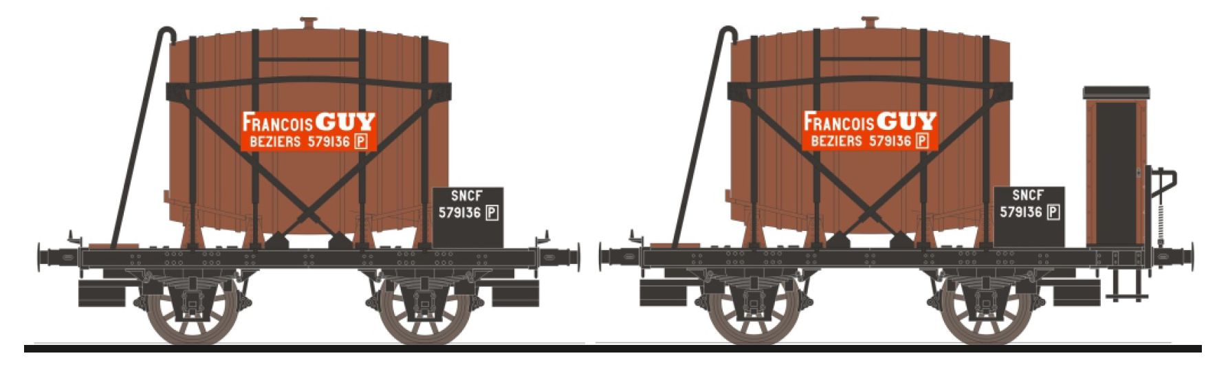 Set mit zwei Weinfasswagen GUY der SNCF, Epoche III.