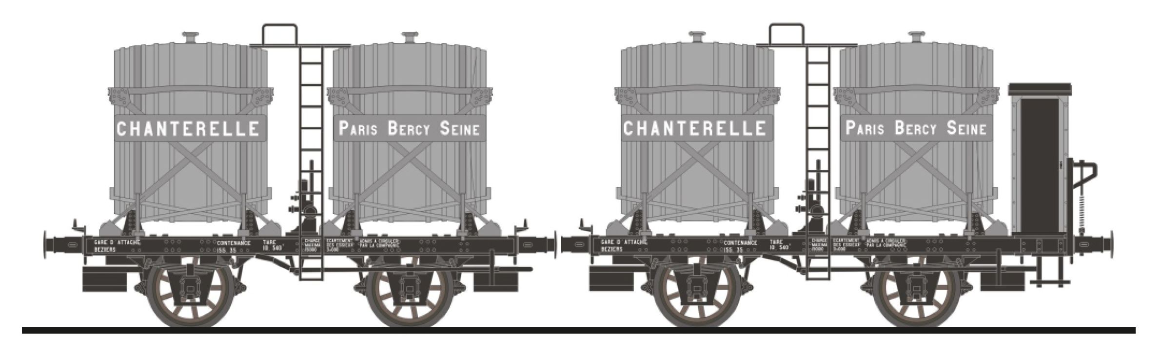 Set mit zwei Weinfasswagen CHANTERELLE der PO, Epoche II.