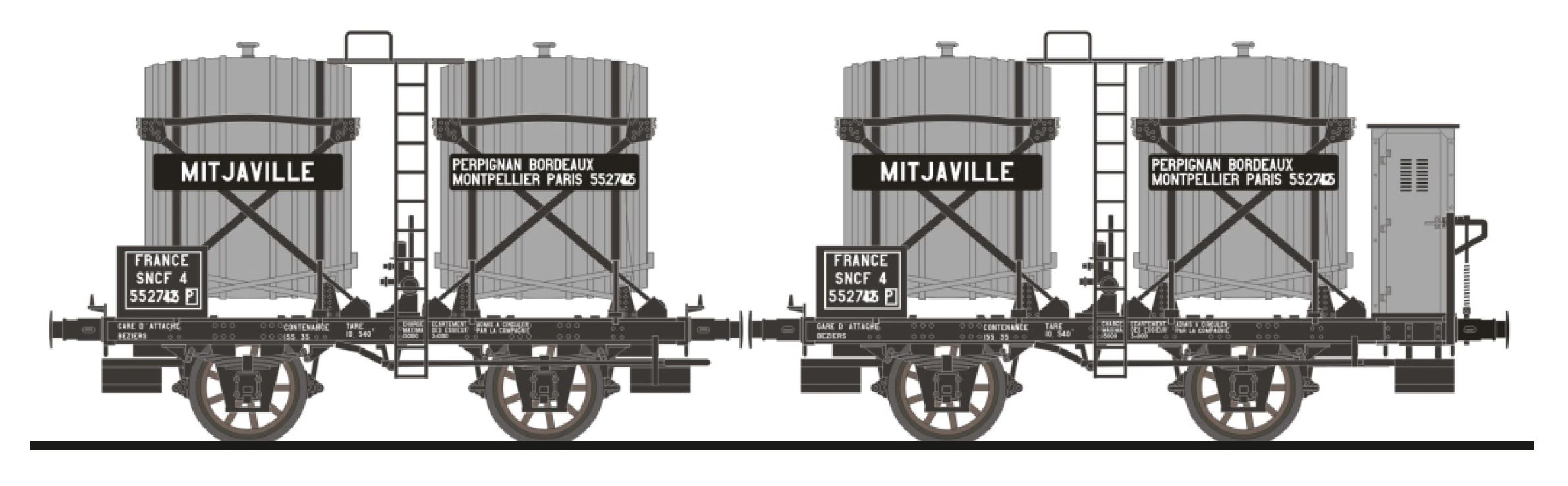 Set mit zwei Weinfasswagen MITJAVILLE der SNCF, Epoche III.