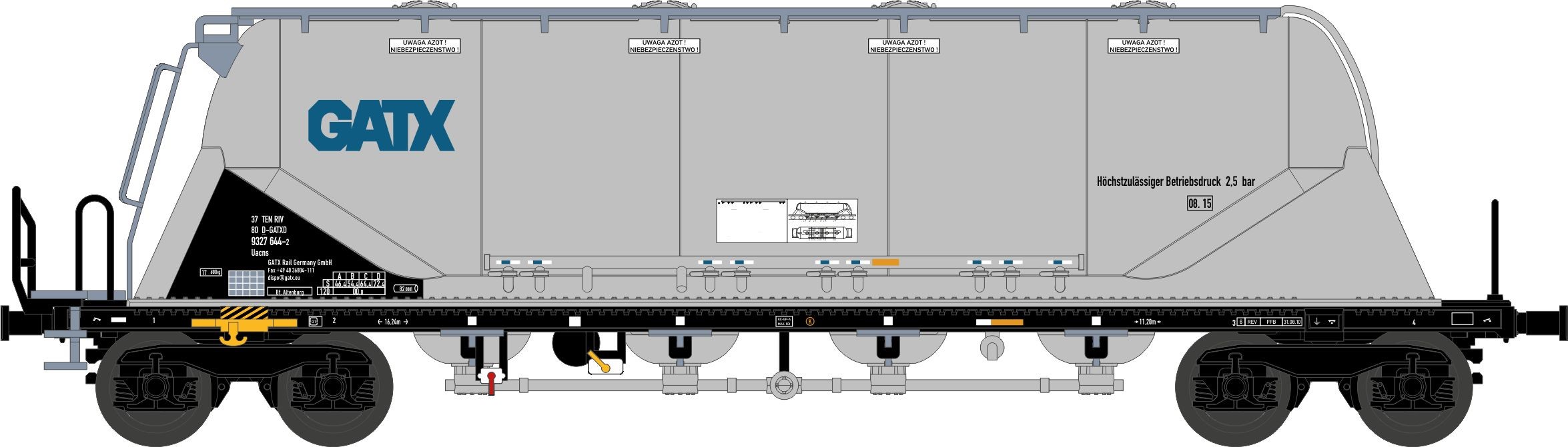 Staubsilowagen der Bauart Uacns der GATX. Betriebsnummer: 9327 634-3