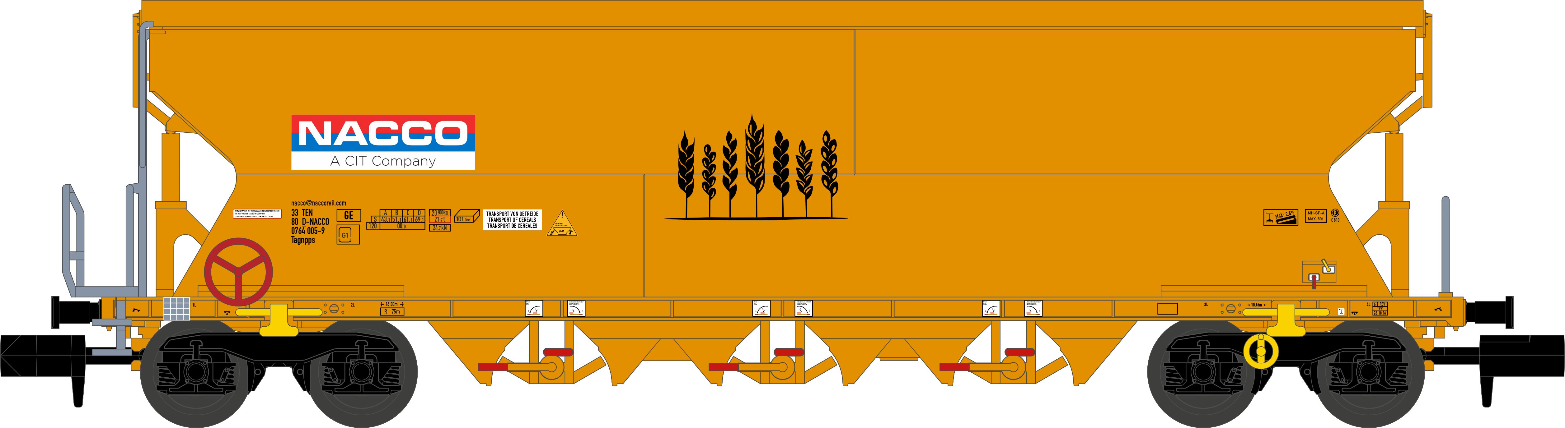 Silowagen für Getreidetransport Tagnpps 101m³ NACCO, gelb, für die Epoche 6.
