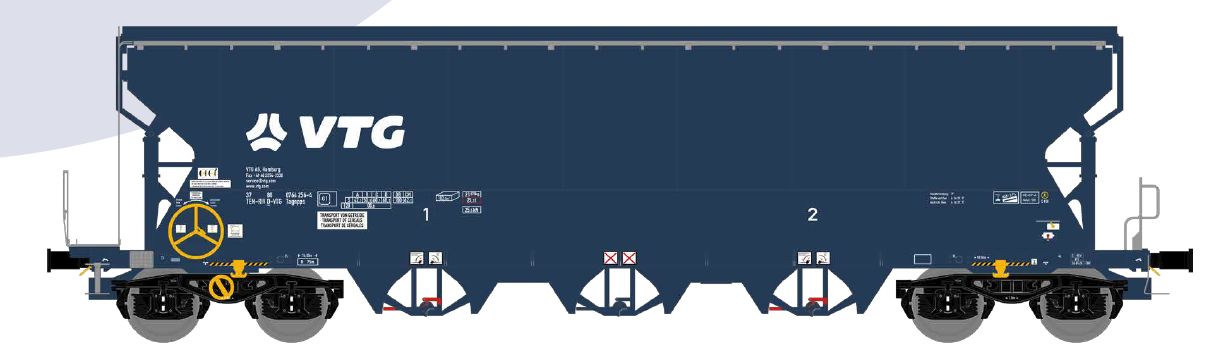 Silowagen für Getreidetransport Tagnpps 102m³ der VTG blau, für die Epoche 6. AC Ausführung