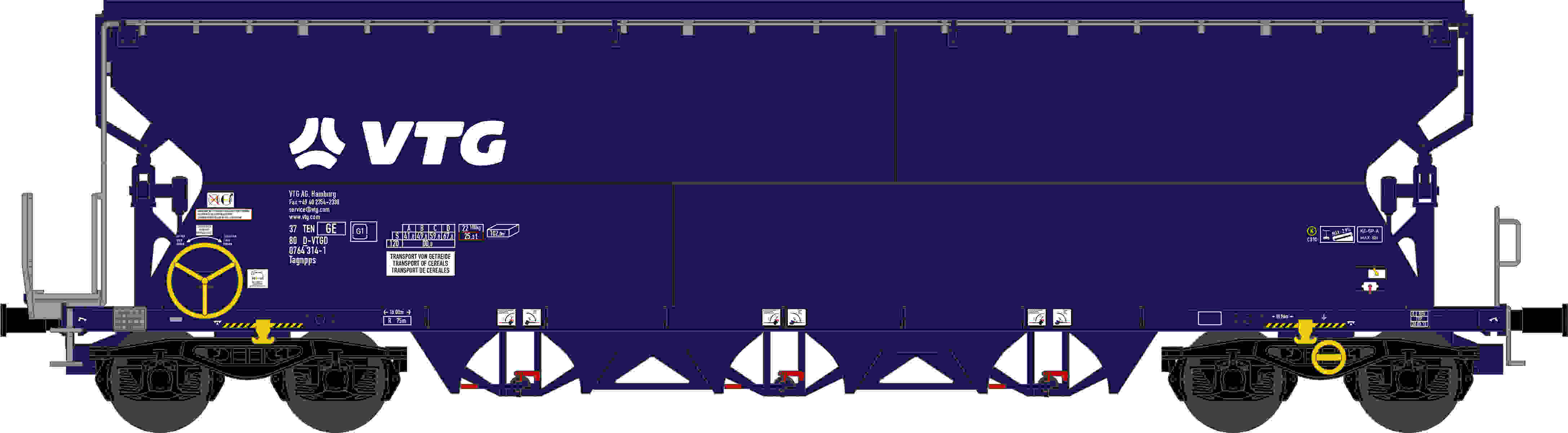 VTG NG, dunkelblau Betriebsnummer: 3780 0764 309-1 3 Auslässe, geänderte Wagennummer