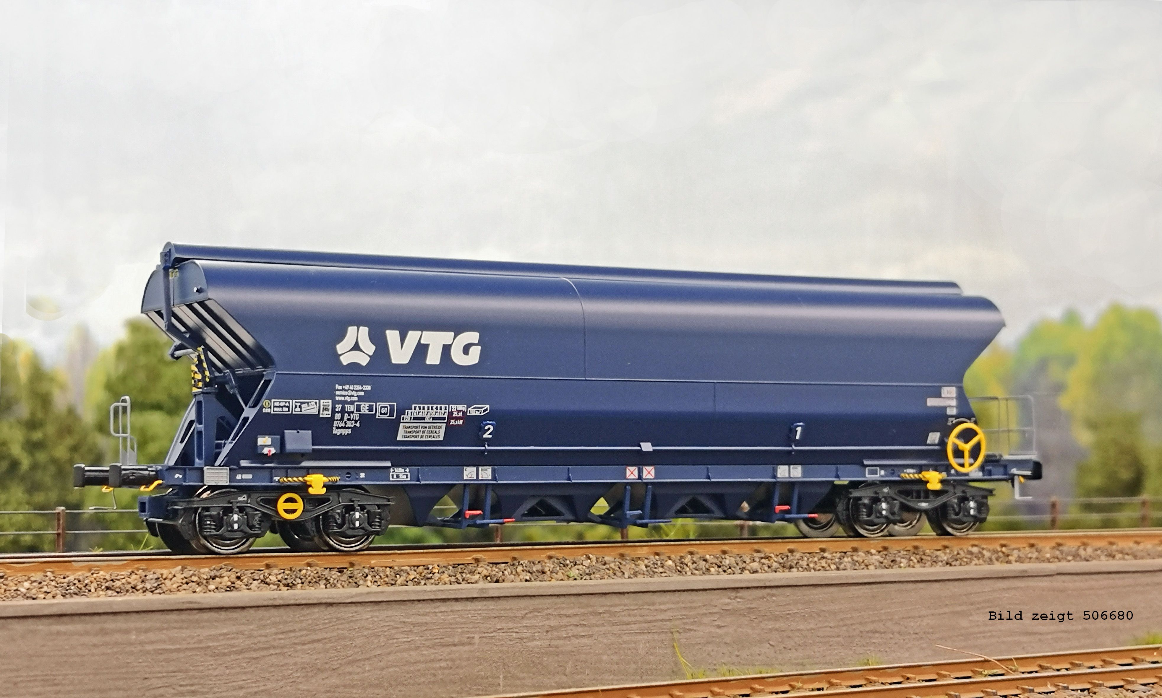 Silowagen für Getreidetransport Tagnpps 102m³ der VTG blau, für die Epoche 6. AC Ausführung