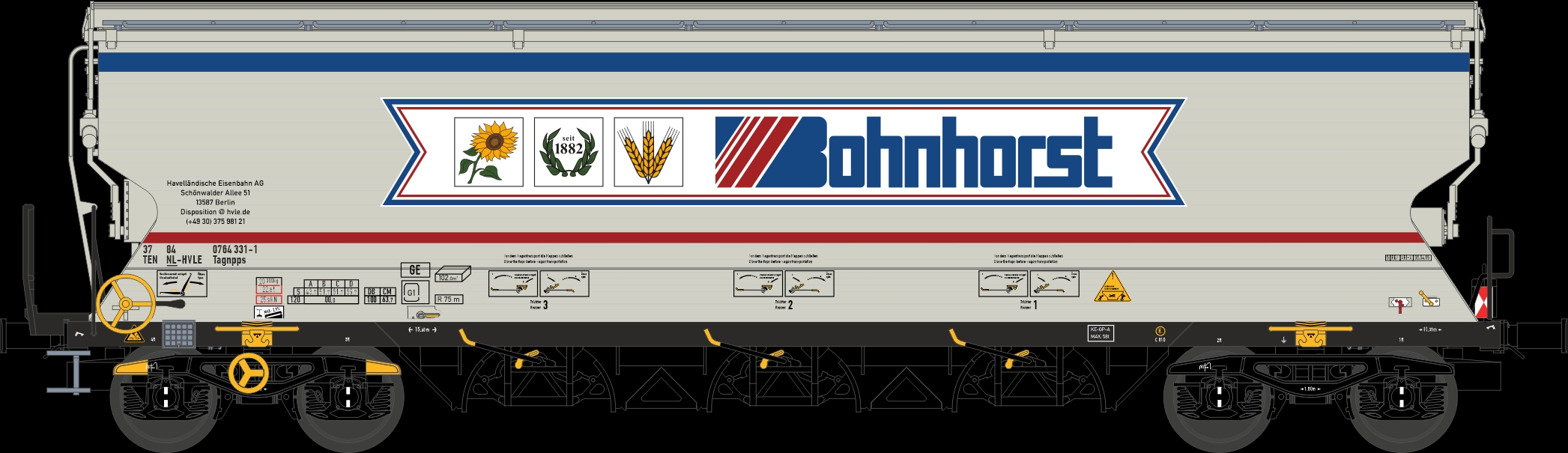 Getreidewagen Tagnpps 102m³ m. Zugschl.bel. DE, beige, Bohnhorst, DC/DCC ,mit Funktionsdecoder, Konstantlicht wie in DE, Betriebsnummer: 0764 331-1